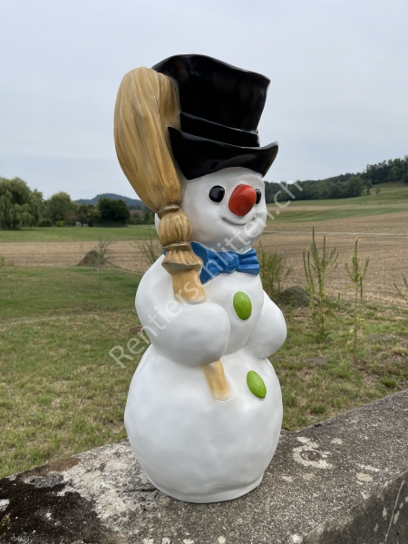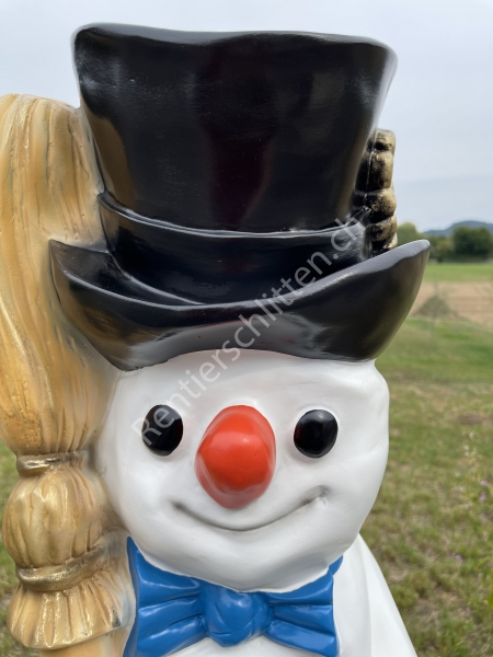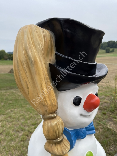 Deko Schneemann gross, mit Besen in der Hand, 80 cm hoch, Deko Figur zur Weihnachtsdekoration